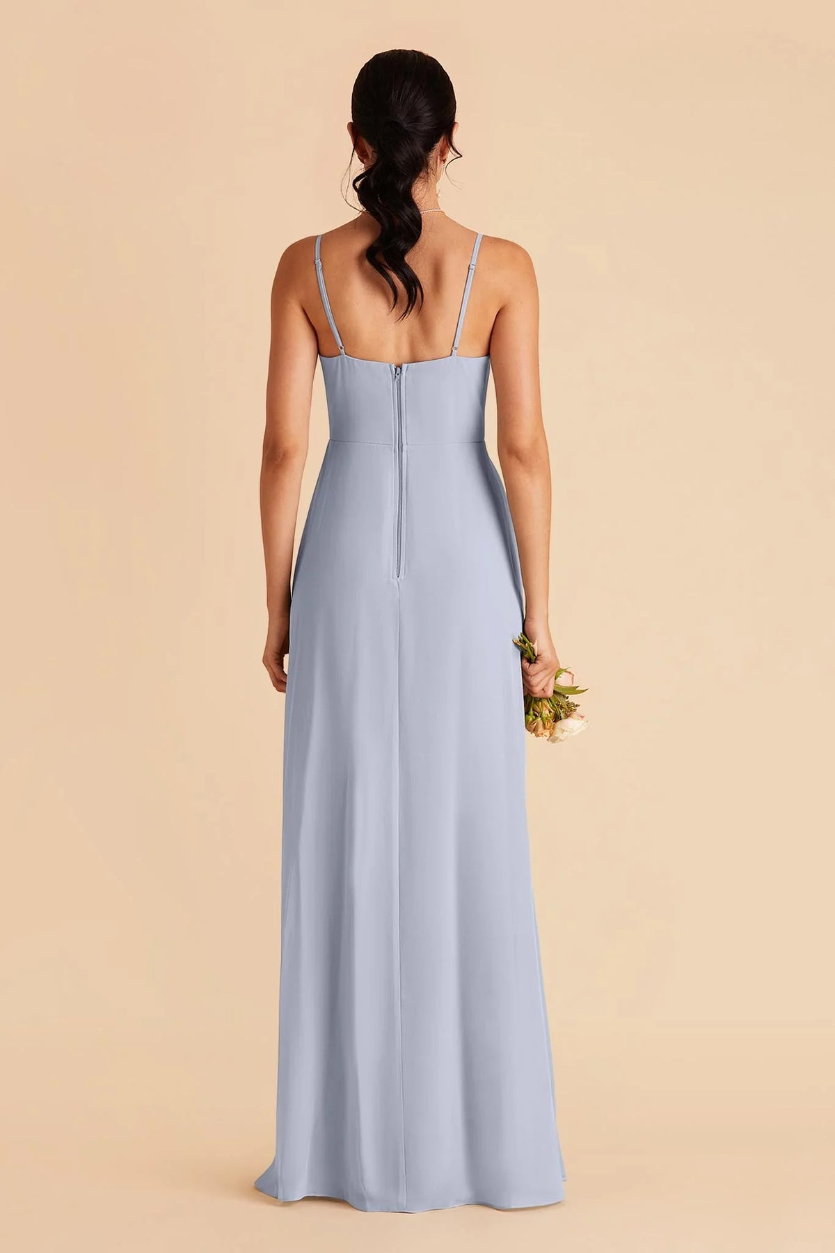 Laid-Back Dusty Blue Chiffon Square Neck Spaghetti-Strap Maxi Bridesmaid Dress with High Side Slit - US 2 / UK 6 / EU 32