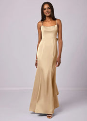 Luxe Mermaid Satin Square Neck Spaghetti Strap Bow Back Floor Length Bridesmaid Dress - US 2 / UK 6 / EU 32