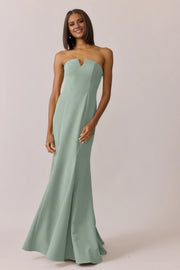 Satin Strapless V-Cut Sweetheart Bodice Trumpet Floor-Length Bridesmaid Dresses