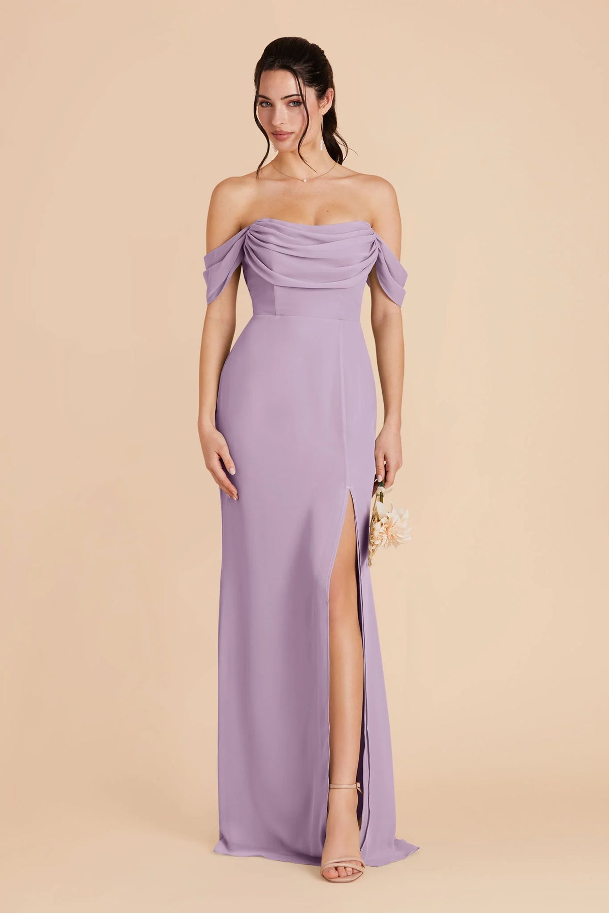 Off Shoulder Draped Chiffon Bridesmaid Dress Convertible Strapless High Slit A Line Floor Length Wedding Guest Formal Gown