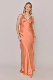 V-Neck Satin Bridesmaid Dress with Cowl Back & Slim-Fit Silhouette