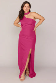 This sleek bridesmaid dress is crafted from smooth, stretchy fabric, featuring a modern one-shoulder neckline with a matching choker strap that creates a bold, contemporary silhouette. The figure-hugging bodice and skirt sculpt the body flawlessly, while a high thigh slit adds movement and allure to the floor-length design. Made with high-quality stretch fabric and a soft, comfortable lining, it is ideal for weddings, bridal parties, formal galas, and all upscale evening occasions.