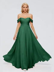 Simple A-Line Off-The-Shoulder Sleeveless Chiffon Pleated Floor-Length Bridesmaid Dress - US 2 / UK 6 / EU 32