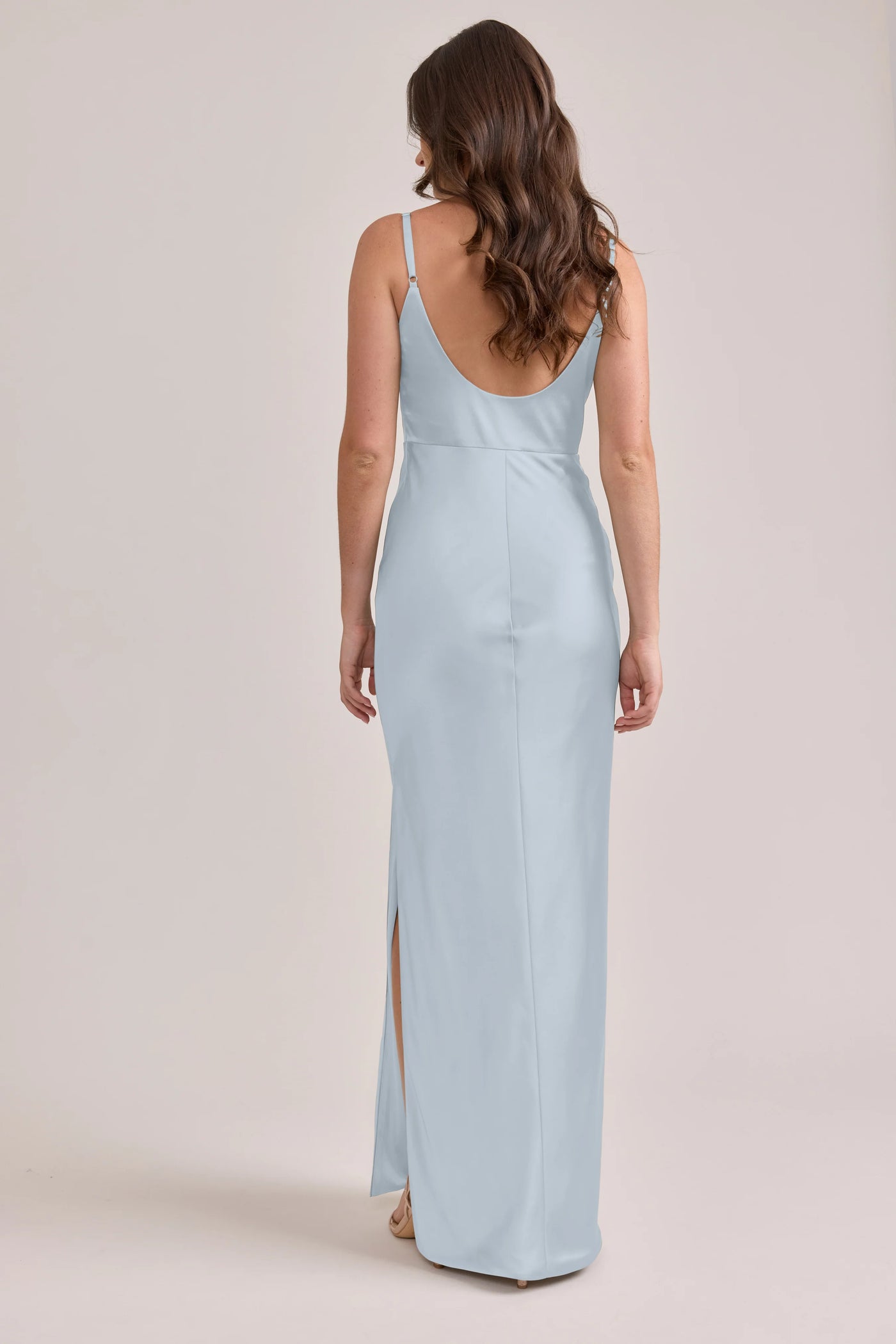 Modern Square Neck Spaghetti Strap Satin Mermaid Bridesmaid Dress with V-Back & High Slit in Sky Blue