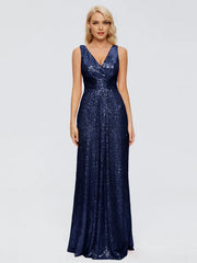 Sparkle Sheath V Neck Sleeveless Pleated Sequins Floor Length Bridesmaid Dress - US 2 / UK 6 / EU 32