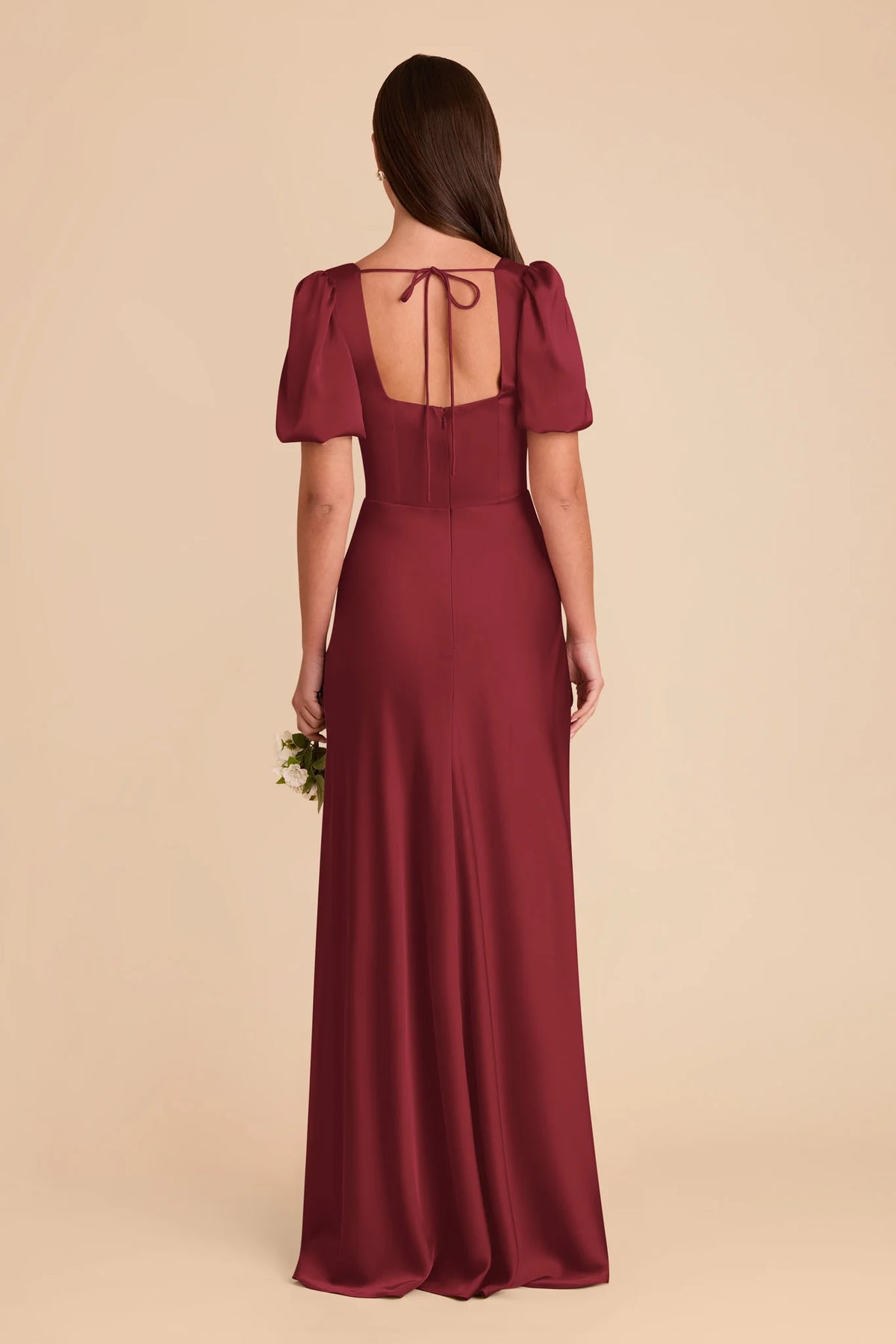 Elegant Fitted Satin Square Neck Puff Sleeve Zipper Back Floor-Length Bridesmaid Dresses - US 2 / UK 6 / EU 32